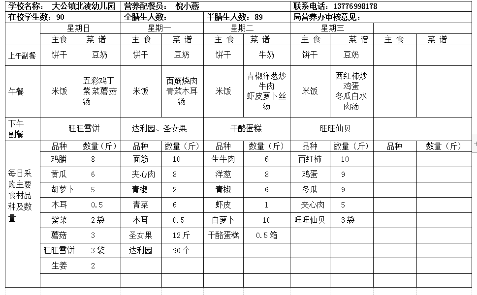 北凌幼儿园2020-2021学年度第一学期第5周食谱