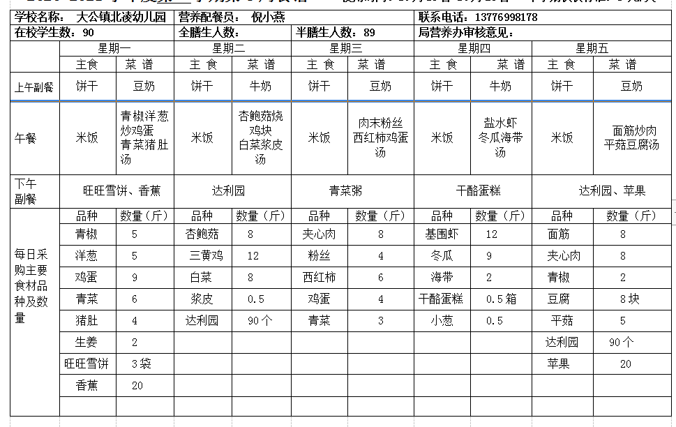 北凌幼儿园2020-2021学年度第一学期第8周食谱