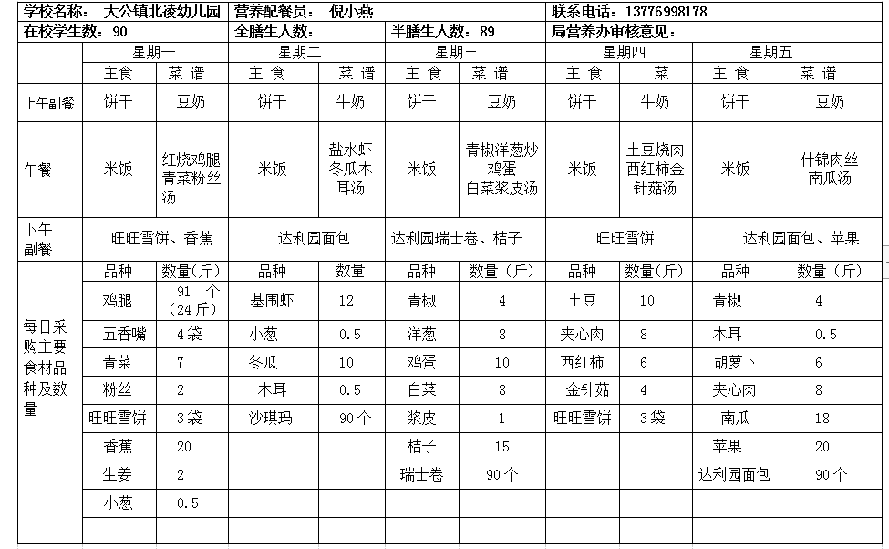 北凌幼儿园2020-2021学年度第一学期第10周食谱