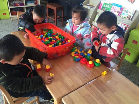我们的自主活动采用固定与灵活设置相结合方式,创设丰富多彩的、多功能的、具有选择自由度的区角,让每个幼儿有机会自由选择,用自身的方式进行学习。例如小班具体设置了以下区域:“生活区”:、喂宝宝、扣纽扣、、编辫子等;“数学区”:数字象棋、图形投放盒等;“表演区”:头饰、手偶、手摇铃、双响筒、扇子、各式各样的服装、快板,腰鼓等进行打击乐;“操作区”: 白板画画、穿编花篮、包糖果、棉花、穿糖葫芦、干树叶、毛线、穿珠子、涂颜色、喂小鸟等半成品;“科学区”里提供望远镜、小汽车、九连环、动物模型、磁性玩具等等。阅读区:各种类型的图书和大小不一的字卡;搭建区:废旧纸箱、废旧易拉罐、幼儿园提供的大、小积木玩具,因为我班可利用空间比较有限,操作区、科学区、阅读区、数学区建立在活动室内;将表演区、以供幼儿进行区域活动,以供幼儿方便操作并根据活动情况灵活调整。同时也是孩子们玩得不亦乐乎。