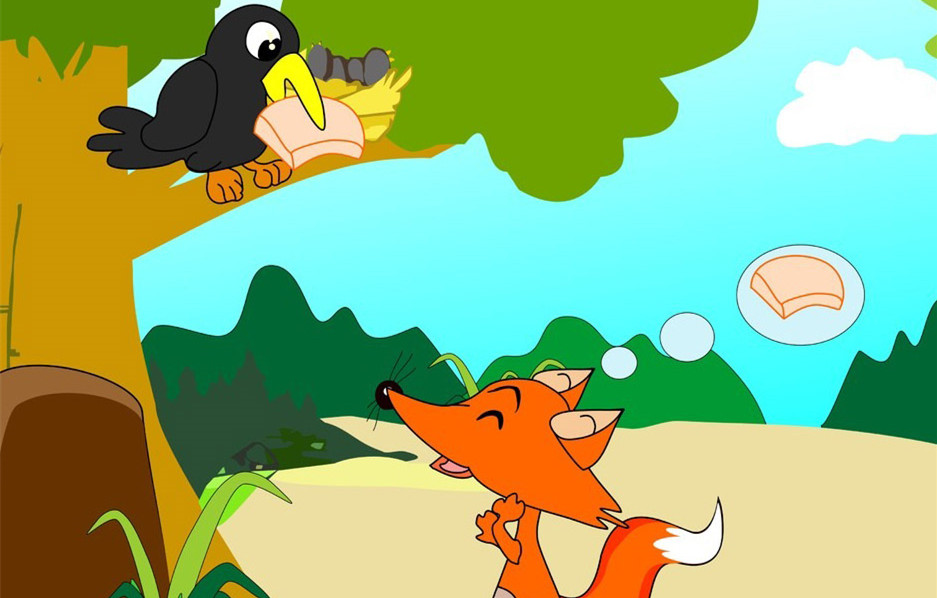 这一切都被狐狸看在眼里,于是它马上跑到树下。它是多么想得到那块肉呀。 “乌鸦,你真太高大、太漂亮了,人们都说你能成为百鸟之王。特别是你的歌声,能让百灵鸟的歌失色。但是,我却没有听到过你的歌声,恐怕百鸟之王你要做不成了。”狐狸别有用心地在树下对乌鸦说。