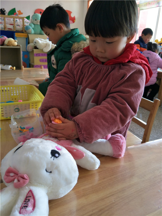 学当小医生 来源: 发布时间:2017-03-21 00:00:00 浏览次数: 次 【字体:小 大】 大家好,我叫储子玙。我是新转来的小朋友。现在在小二班,我认识了好多小哥哥小姐姐。他们都很好,喜欢和我做游戏,带着我玩儿。今天游戏活动的时候,我的小兔突然宝宝生病了,小哥哥给我找来了针筒,让我给它治病,打针。今天学当小医生,真开心! 分享到: 【打印正文】