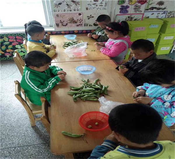 家长们为幼儿准备了大量的蚕豆荚。活动前,老师给孩子讲解了蚕豆的生长过程,让孩子详细观察蚕豆的形状、特征,并示范了剥豆子的要领。接着,孩子们便动手剥蚕豆了,孩子们一边专心致志地剥着蚕豆,一边探讨着蚕豆里的秘密,有的豆子大,有的豆子小,有的豆子多,有的豆子少,颜色也不一样……看着自己动手剥好的蚕豆,孩子们笑得可开心了。有的孩子剥完后,还仔细地数起蚕豆来,给蚕豆宝宝排起了队,比出了大小,还完成了很多不同的造型。最后,老师向孩子们介绍了蚕豆的营养价值。孩子们将剥好的蚕豆送进厨房,午餐的时候,孩子们细细品尝了自己的劳动果实,他们吃得特别香……