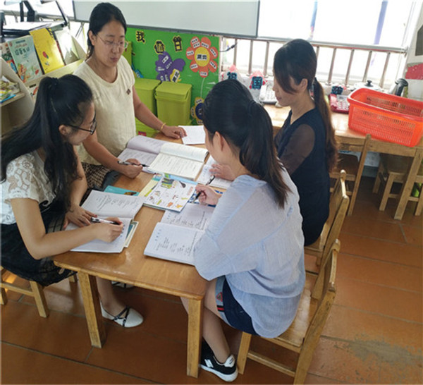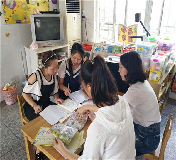 集体备课包含课前研讨、形成教案、课后反思几个环节。 首先,主备课教师根据教学计划制定下一周的研讨内容,并针对目标设定、教具的准备、教学过程与教师进行研讨, 并形成教案。 接着,主备课教师进行教学,并进行交流反思,总结课堂中的亮点与不足,进行二次备课。 集体备课中,老师们大胆发表见解,处处充满着交流、探究氛围。