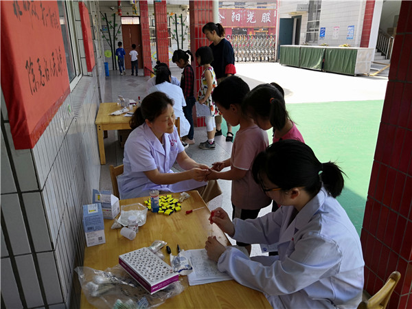为了让家长更好的了解幼儿的生长发育状况,及时发现幼儿生长发育异常。5月30日上午,在镇卫生所田桂兰医师的带领下,大公镇卫生院的医生们对北凌园的孩子进行了一年一度的“六一体检”。