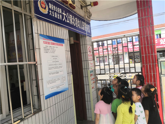 首先,保安叔叔介绍,在测试前先拨打“110”报警。然后,再按下一键报警按钮,外面的警示灯就会亮起来、响起来,110指挥中心就会接到警情报警。最后,保安叔叔输入密码、解锁,警示灯就关闭了。孩子们看到保安叔叔的操作,纷纷给保安叔叔点赞。