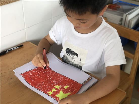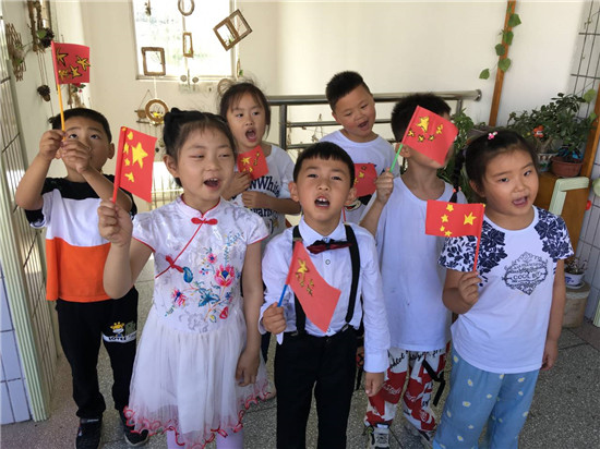 活动中,孩子们手工制作了国旗,红歌在幼儿园的上空飘扬。他们一展歌喉,用甜美的嗓音歌唱《二小放牛郎》、《红星闪闪》、《小海军》、《国旗红红的哩》、《童心向党》等一首首慷慨激昂、振奋人心的经典红色歌曲,歌唱自己对党满满的爱。