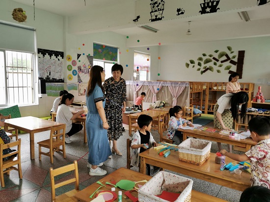 在园长储呈凤的带领下,指导小组成员深入到各个班级,分别对五个班级进行半日活动随班指导。帮助老师们查找问题,提高半日活动的保教质量。活动后,指导小组就环境创设、区域分部区域材料等方面进行反馈、研讨。