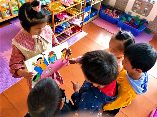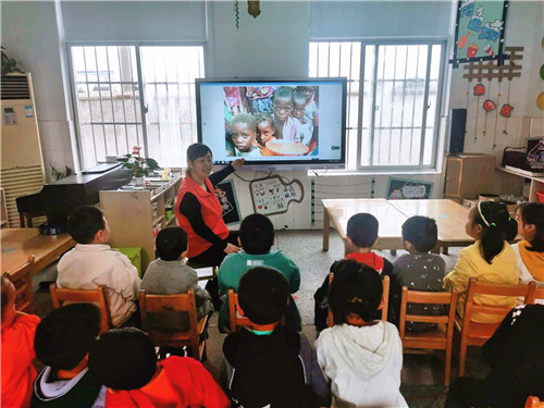 其次,家长志愿者通过图片讲述《饥饿的非洲》,了解偏远贫困地区孩子们窘迫的生活环境及饮食情况,激发了幼儿的怜悯之情。