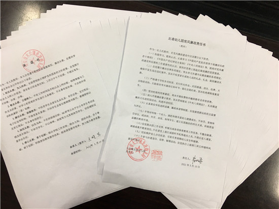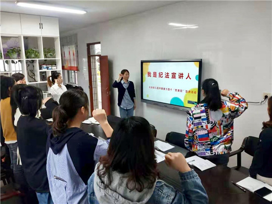 活动前,园长储呈凤向全体教职工传达了《关于在全市教育体育系统组织开展2021年“5·10”思廉日活动的通知》的文件精神,并对全园教师提出了具体纪律要求。活动一:从多角度阐释了如何扎实践行《幼儿园教师职业道德规范》。活动二:组织全体教职工签订了《廉洁从教公开承诺书》,要求全体教师要争当廉洁从教的表率。活动三:开展“我是纪法宣讲人”廉政宣讲活动。教育引导教职员工严格遵守党规党纪,争当清廉自守表率。活动四:警廉倡廉,积极组织教师观看廉政反腐警示片《反腐倡廉》,全体教师深刻的意识到作为一名教育工作者应守牢廉洁执教的道德底线,并积极撰写了观后感。活动五:集体宣誓承诺仪式。全园教职工庄重承诺“自觉抵制有偿家教,不利用职务之便谋取利益。”