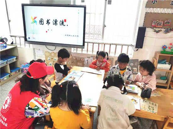 各班教师利用图片、视频、课件等方式向幼儿介绍什么是中国共产党,认识党徽、党旗。通过手语、红色故事情境表演、读书漂流等形式,引导幼儿和家长感受伟大祖国的辉煌成就,用最朴实的方式礼赞祖国。