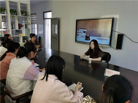 为认真学习贯彻《中华人民共和国民法典》,切实把握民法典颁布实施的重大意义,进一步增强全体教师学法、用法意识,5月18日上午,北凌幼儿园邀请大公镇司法所干事杨清清为老师们开展《民法典》解读专题讲座活动。